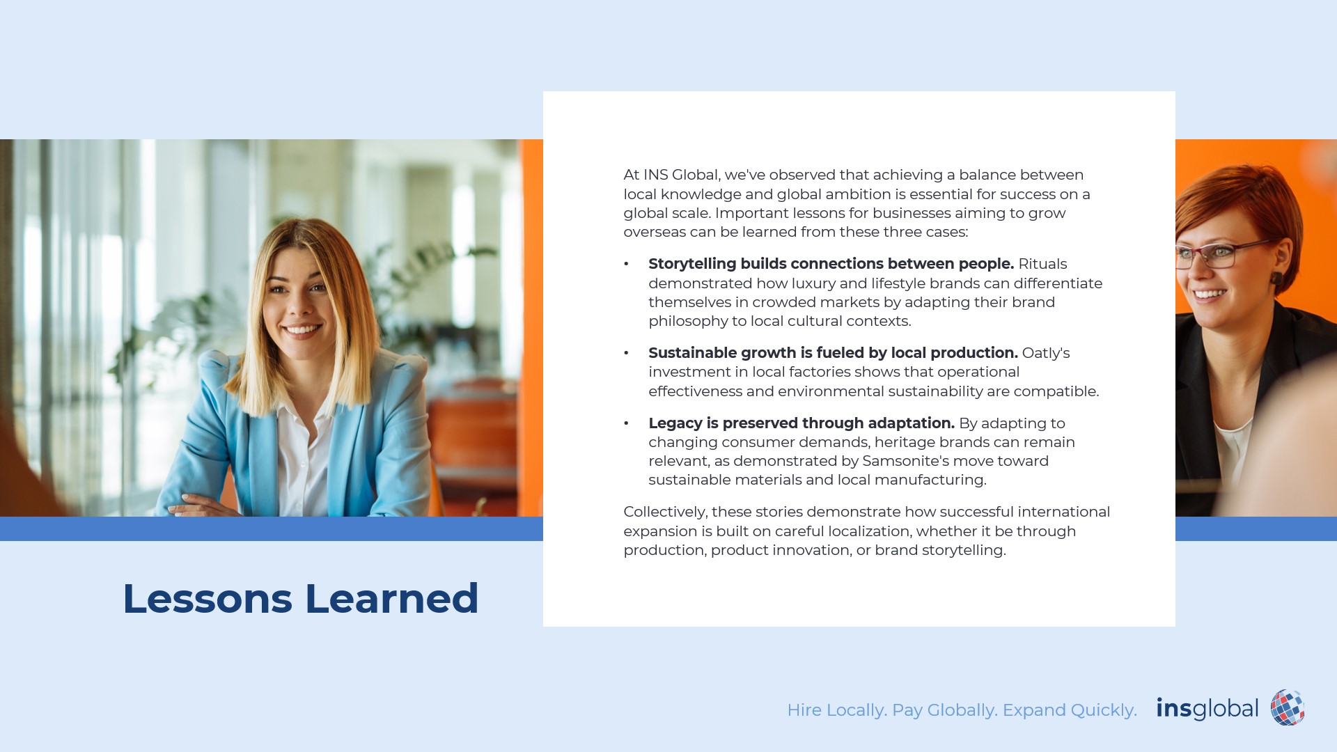 We think INS Global is a good solution about starting in a market like China. Understanding the market doesn’t mean you need to set up a company immediately.